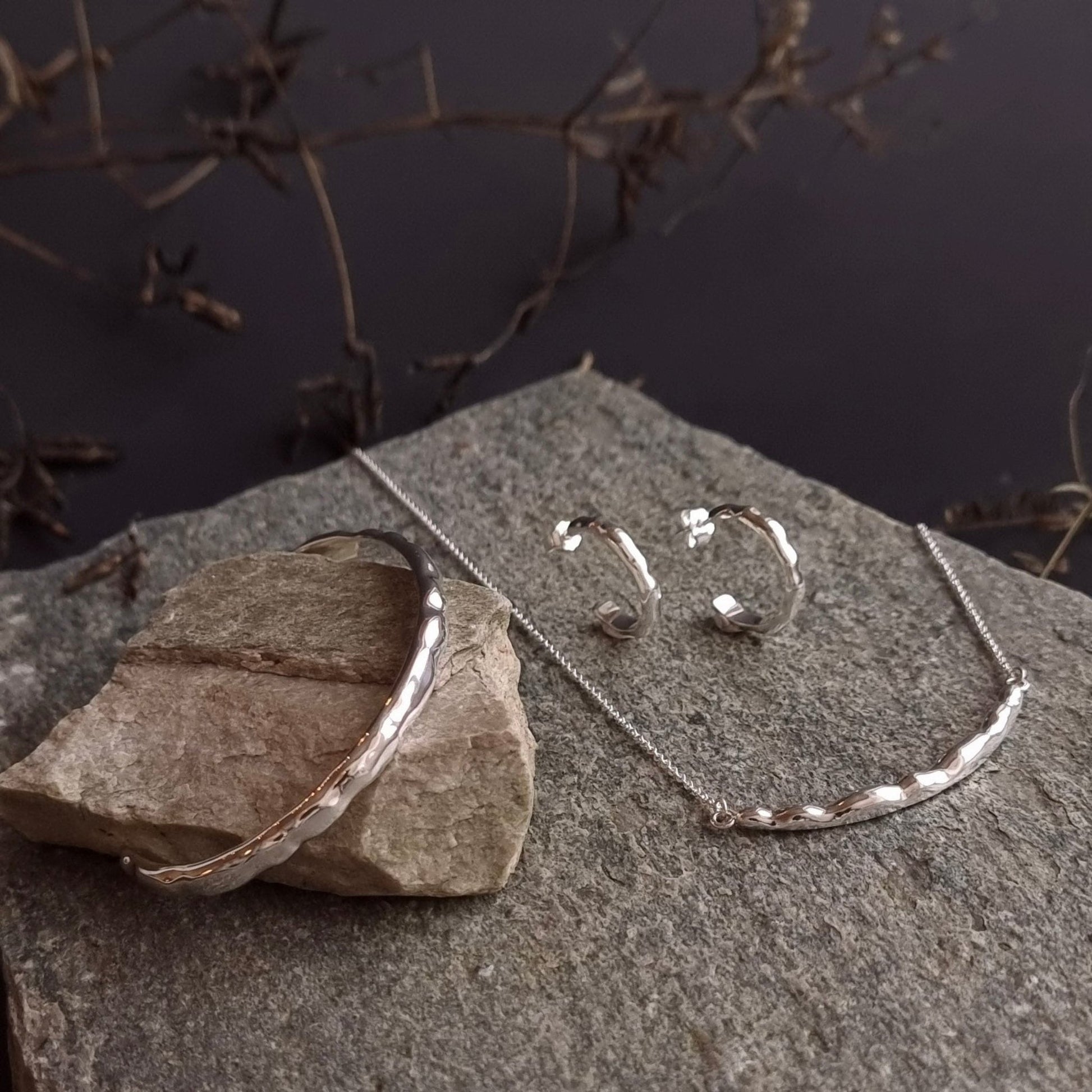 Øredobbene i sølv er formet på samme måte som smykket og armringen i samme kolleksjon, med filte buer og organiske former som reflekterer lyset naturlig og fint. Se kolleksjonen her